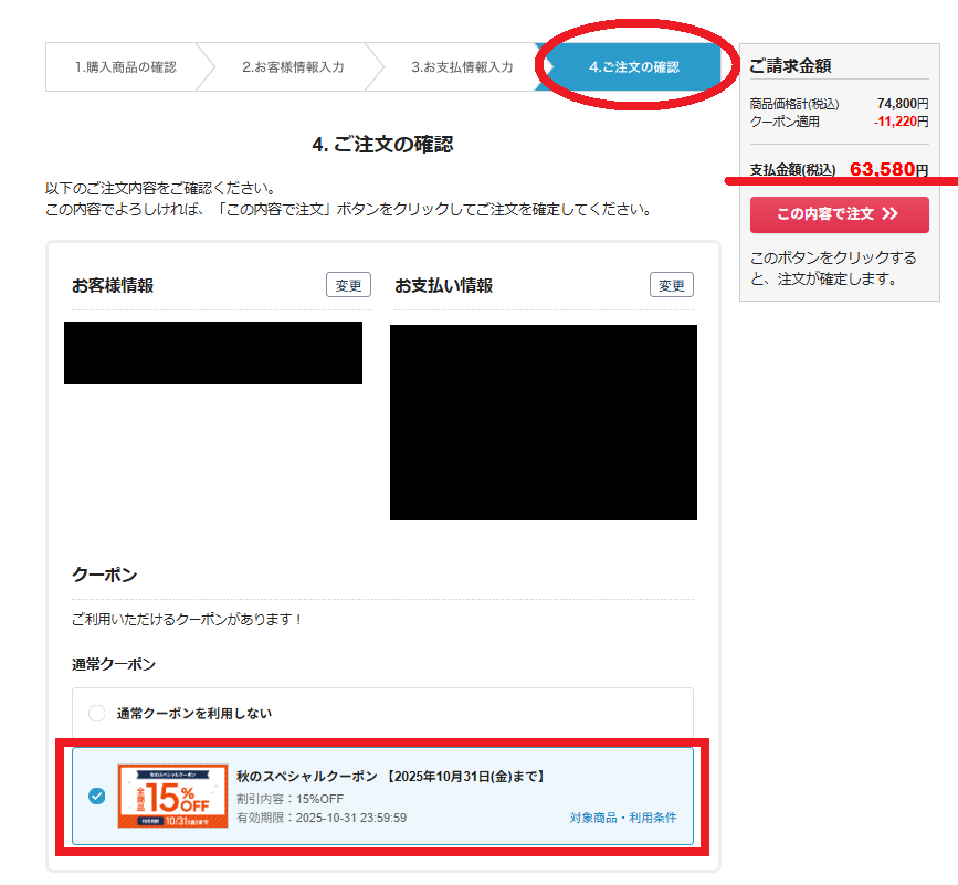 支払方法でクレジットカードを選択し、「分割払い」または「リボルビング払い」を指定する方法です。 - ローンでの分割払い