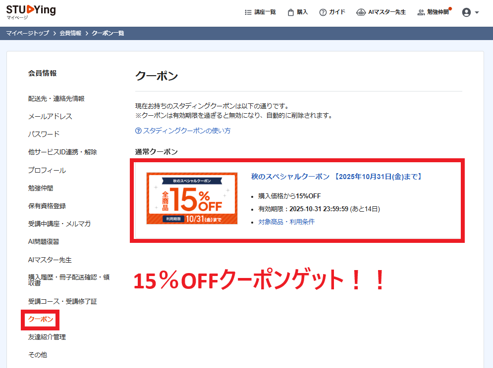 大学、専門学校、高等学校に在学中の方は、スタディングの全商品が20%OFFになります。
