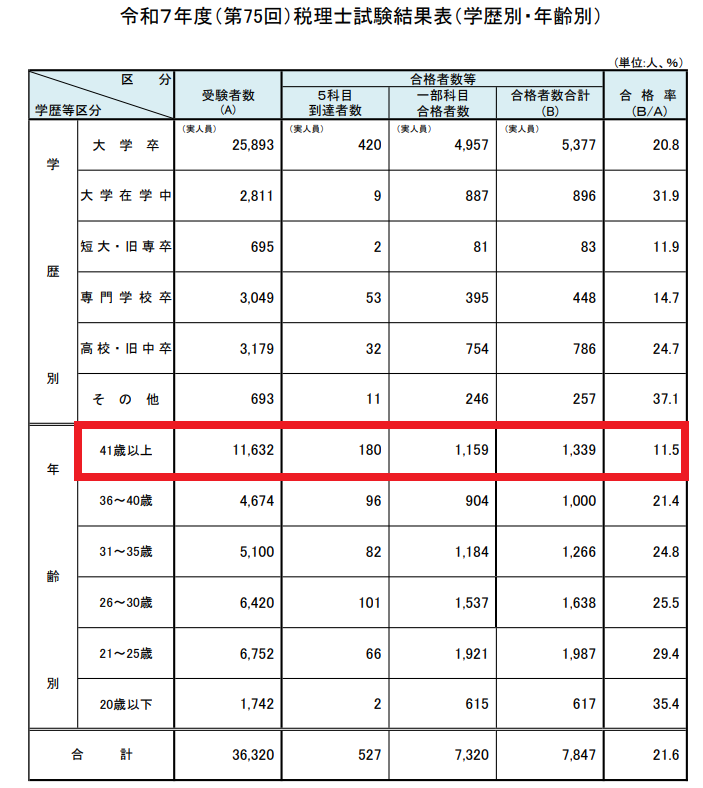 実際に、税理士試験では40歳を超える方が毎年たくさん合格されています!