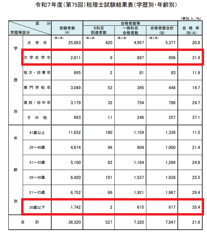 令和7年(2025年)に実施された税理士試験の全体の合格率は17.8%でした。